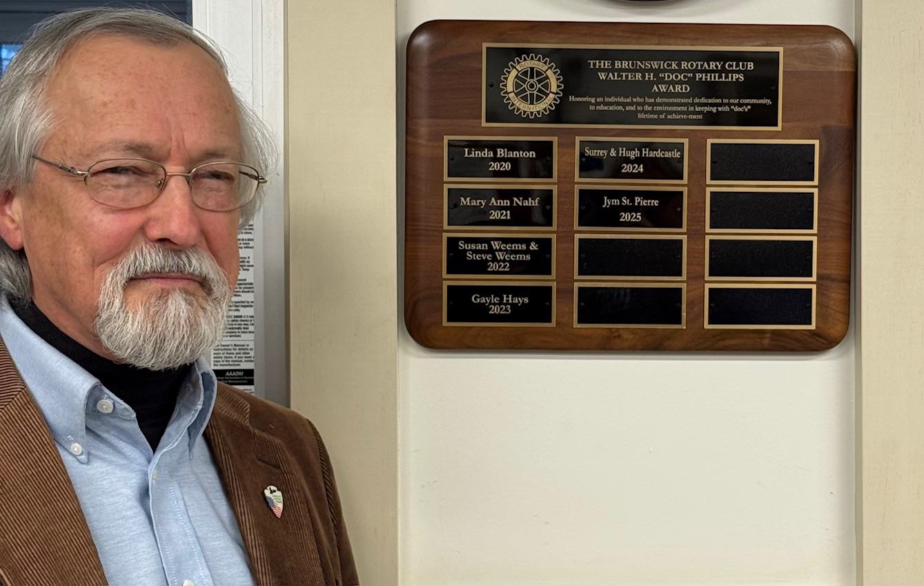In 2019, Harpswell and the Brunswick Rotary Club lost a beloved member, Walter “Doc” Phillips. Alongside his wife Joan, Doc was a pillar of the community, contributing to the Conservation Committee, Harpswell Land Trust, and Rotary for over 40 years. To celebrate his legacy, the Brunswick Rotary Club established the annual Walter “Doc” H. Phillips Memorial Award in 2020. A plaque at the Harpswell Town Office Building honors each awardee. The recipients should be community members who have shown dedicated involvement in areas that were dear to Doc, such as land conservation, volunteerism, service to others, education, water quality, and science programs. The award is presented annually on Doc’s birthday.