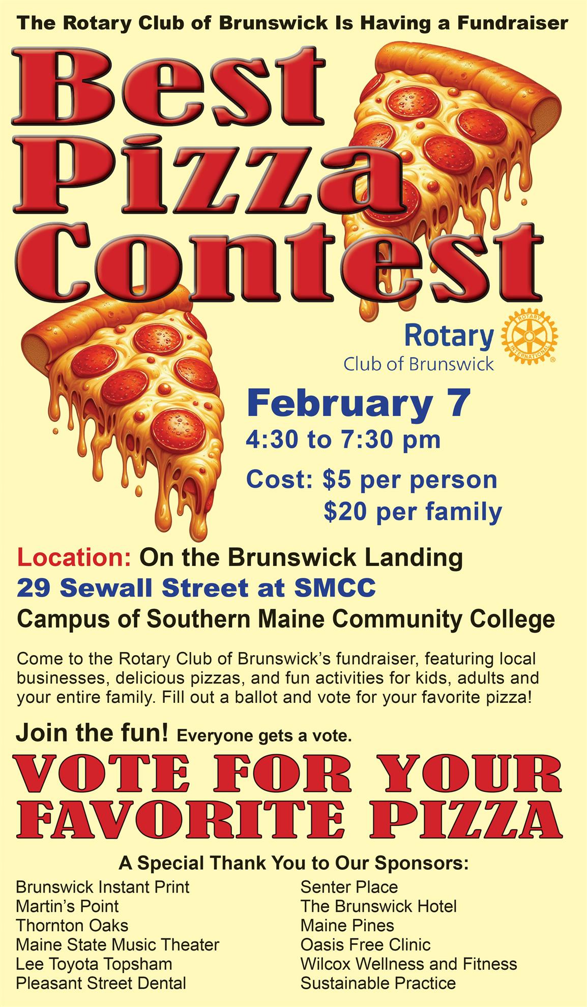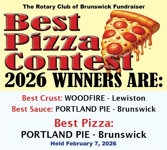 The Great Pizza ContestHere is a peek at our GREAT PIZZA CONTEST!! Wonderful evening. Hope to see you at our next one. A special thank you to our eight pizza businesses for donating their time and delicious pizza for our fundraiser: Bailey Island General Store, Zach's Country Store, Portland Pie Company, Antigoni’s Pizza Brunswick, Domino's Pizza, WoodFire Pizza, Flight Deck Brewing and Otto And a big Thank You to our 2026 Sponsors: Brunswick Instant Print Martin’s Point Thornton Oaks Maine State Music Theater Lee Toyota Topsham Pleasant Street Dental Senter Place The Brunswick Hotel Maine Pines Racquet & Fitness Oasis Free Clinic Wilcox Wellness and Fitness Sustainable Practice ![]() ![]() ![]() ![]() ![]() ![]() ![]() ![]() |